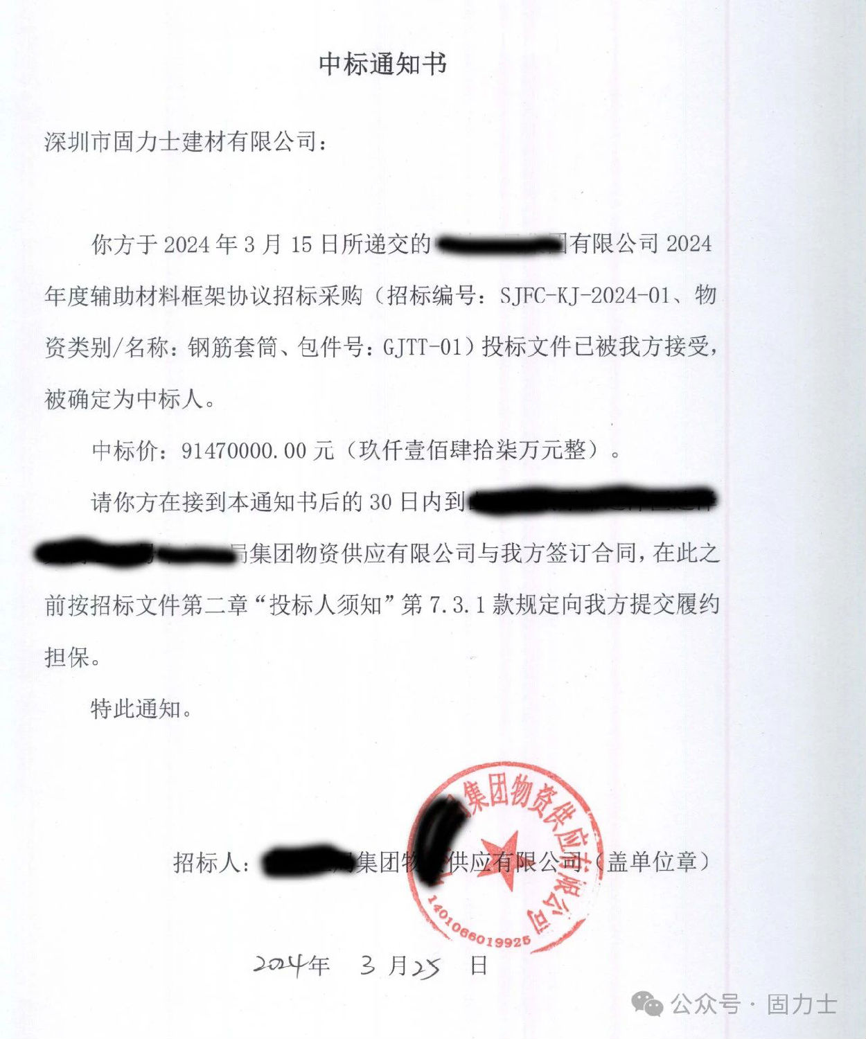 2024年3月,固力士成功中標(biāo)高達(dá)九千余萬的招標(biāo)采購(gòu)項(xiàng)目,這一重大突破不僅刷新了公司的中標(biāo)紀(jì)錄,更彰顯了固力士在業(yè)界的卓越實(shí)力與深厚底蘊(yùn),為公司的發(fā)展開啟了嶄新的篇章。
